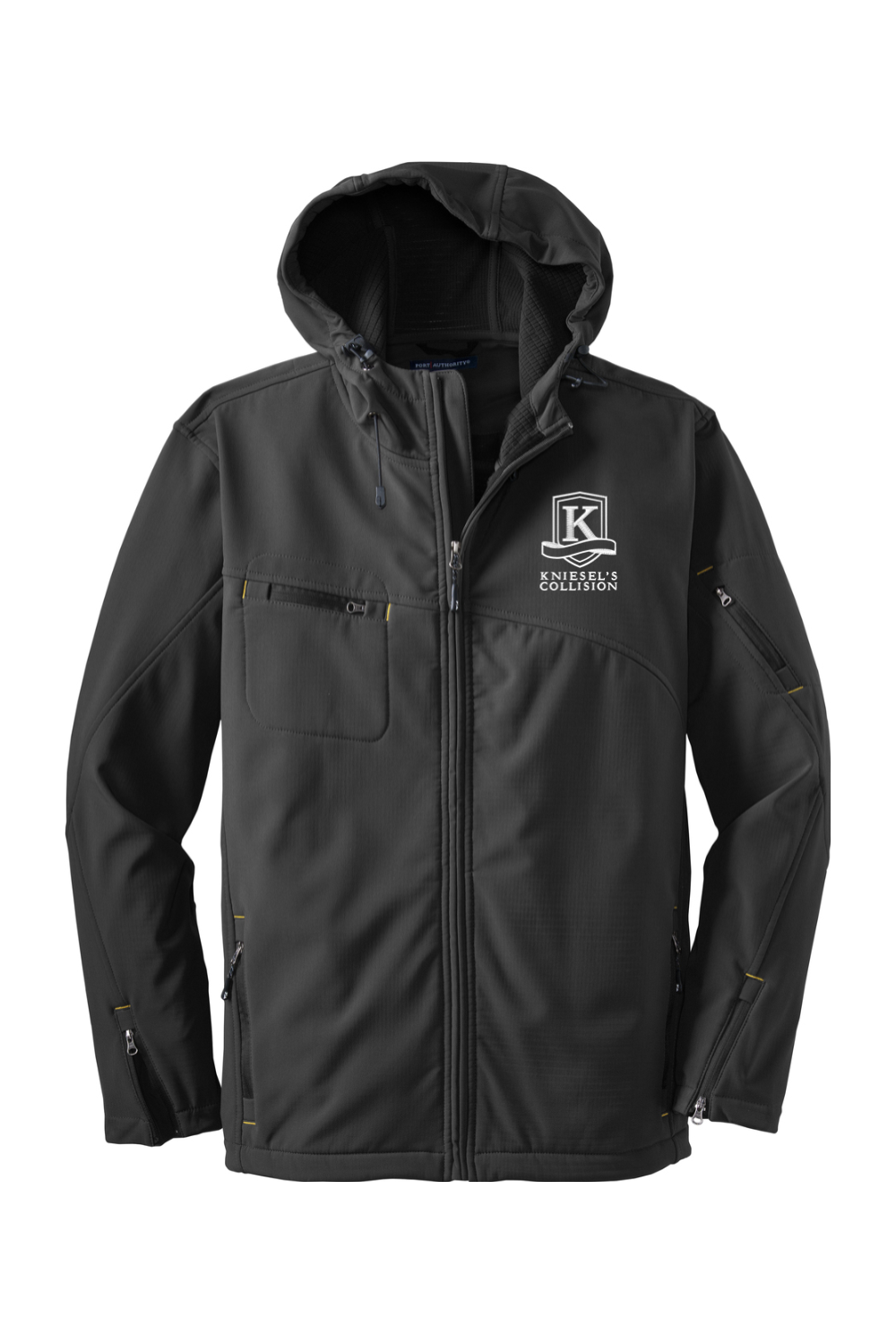 The Men’s Port Authority Textured Hooded Soft Shell Jacket is your ultimate blend of performance and style. Designed to tackle any weather, it’s wind-resistant, water-repellent, and breathable—perfect for both workdays and weekends. Functional details like zippered sleeve vents, a sleek hood, and bar tack accents elevate its utility while keeping you effortlessly stylish. Pair it with our classic polo featuring an EMB logo on the left chest for a look that’s polished and professional. Don’t just adapt to the elements—stand out with confidence.