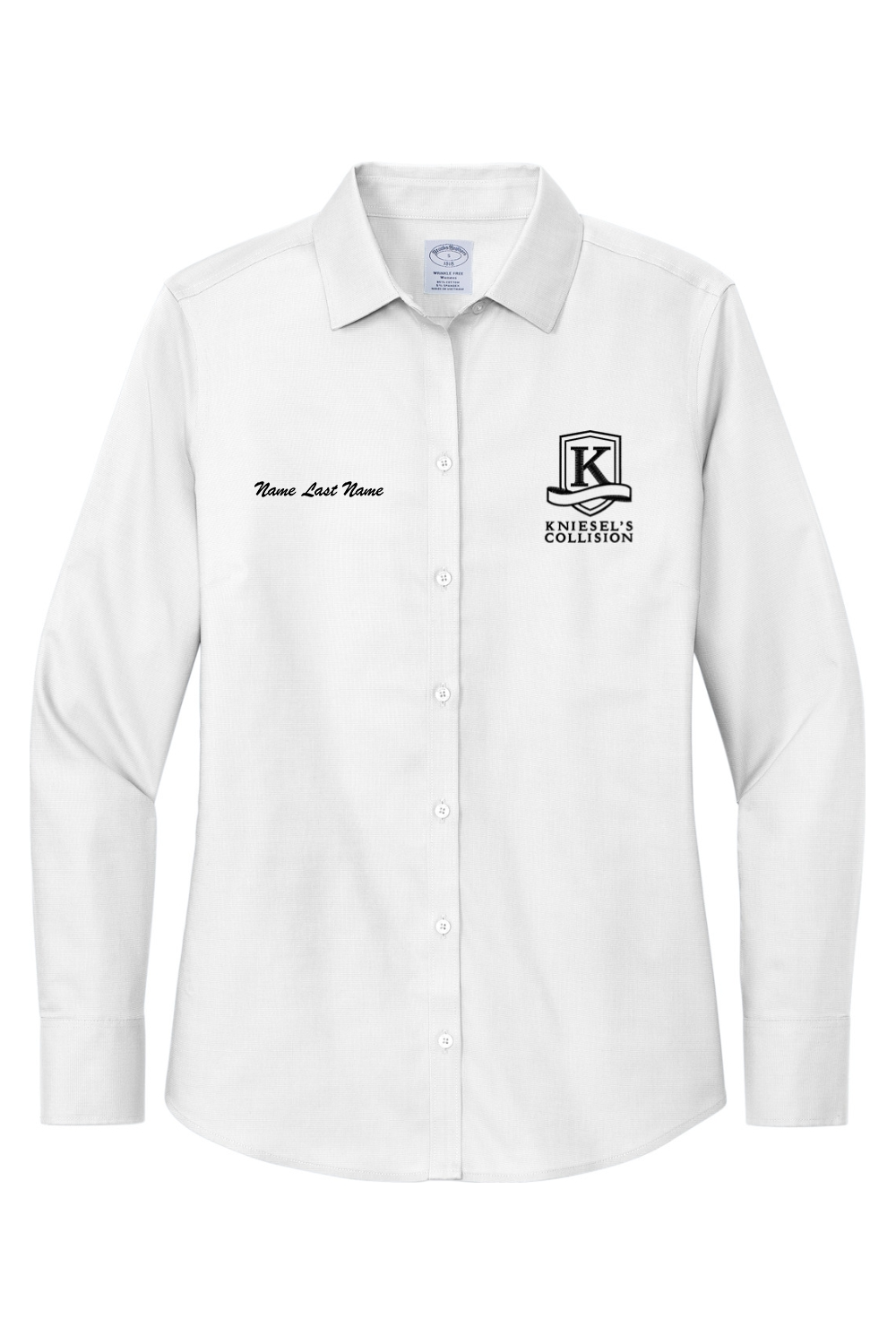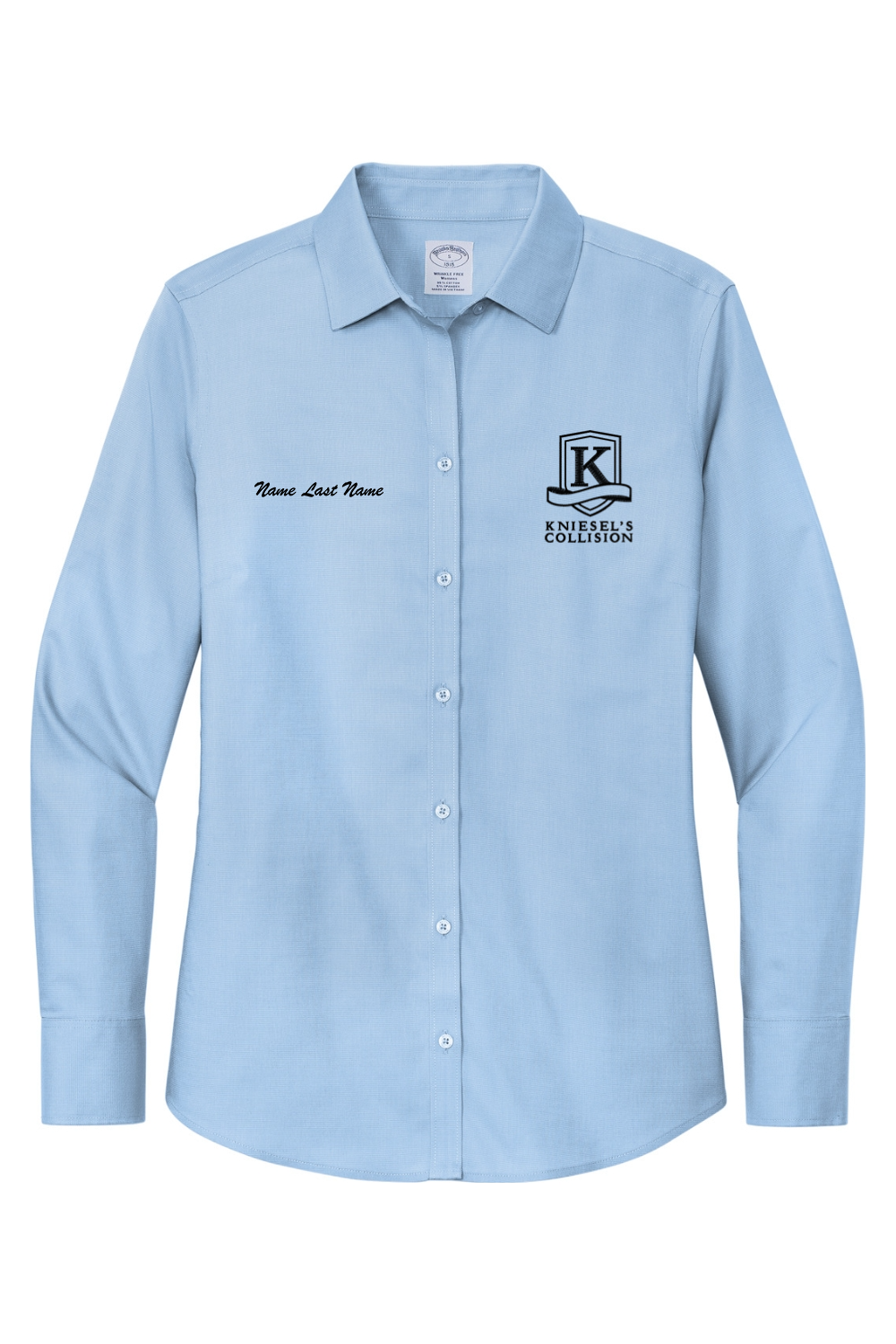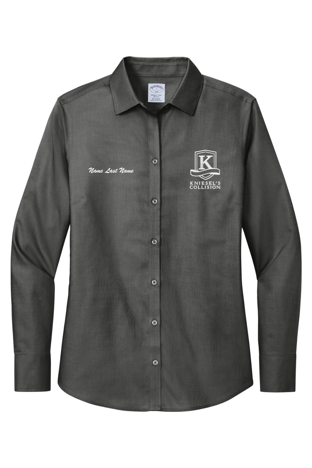 Introducing the Women’s Brooks Brothers Wrinkle-Free Stretch Nailhead Shirt – the perfect blend of sophistication and comfort. Crafted with advanced wrinkle-free technology, this shirt keeps you looking sharp from morning to evening without the need for ironing. Featuring an embroidered logo on the left chest, it adds a subtle touch of elegance. Plus, you have the option to personalize it with your name embroidered on the right chest, making it uniquely yours. Effortless style and personalization in one!